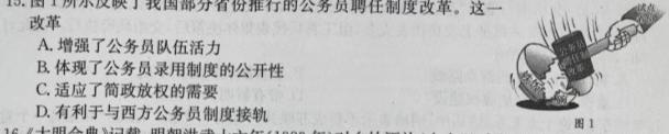 15.图1所示反映了我国部分省份推行的公务员聘任制度改革。这一改革A.增强了公务员队伍活力B.体现了公务员录用制度的公开性C.适应了简政放权的需要D.有利于与西方公务员制度接轨图1