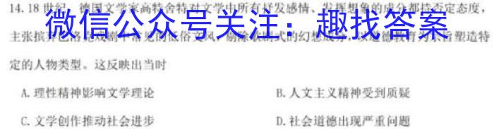 14.18世纪,德国文学家高特舍特对文学中所有抒发感情、发挥想象的成分都持否定态度,主张弃巴洛克戏剧中常见的低俗文风,剔除歌剧式的幻想成分,以道德教育为宗旨塑造特定的人物类型。这反映出当时A.理性精神影响文学理论B.人文主义精神受到质疑C.文学创作推动社会进步D.社会道德出现严重问题