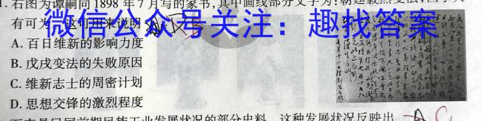 11.石图为谭嗣同1898年7月写的家书,其中画线部分文字为:朝廷毅然变法,国事大有可为。这可用来说明A.百日维新的影响力度B.的失败原因C.维新志士的周密计划D.思想交锋的激烈程度