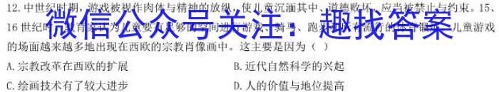 12.中世纪时期,游戏被视作肉体与精神的放纵,使儿童沉其中、道德败坏,应当被禁止与约束。15、16世纪时,教育家认为儿童要有足够的空间进行游戏、骑马、跑步和所有流行的体育锻炼。儿童游戏的场面越来越多地出现在西欧的宗教肖像画中。这主要是因为()A.宗教改革在西欧的扩展B.近代自然科学的兴起C.绘画技术有了较大进步D.人的价值与地位提高