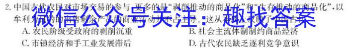2.中国古代农民对市场交易的参与,更多的是“剥削推动的商品化”和“生存推动的商品化”,以牟利为目的的出售剩余产品的商业活动并不占主导。这从本质上反映了中国古代A.农民阶级受政府的剥削沉重B.社会主流体制制约商品经济C.市镇经济和手工业发展滞后D.古代农民缺乏逐利竞争意识