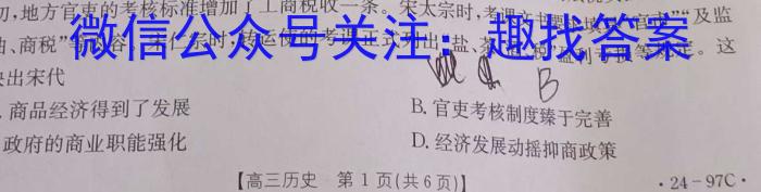 5.宋初,地方官吏的考核标准增加了工商税收一条。宋太宗时,考课文书要求填具“官市”“及监给曲、商税”等内容。宋仁宗时,转运使的考课正式列出“盐、茶、酒、税”盈利亏损等规定。这B反映出宋代A.商品经济得到了发展B.官吏考核制度臻于完善C.政府的商业职能强化D.经济发展动摇抑商政策24-97C