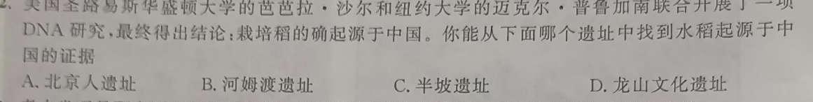 2.美国圣路易斯华盛顿大学的芭芭拉·沙尔和纽约大学的迈克尔·普鲁加南联合开展一项DNA研究,最终得出结论,栽培稻的确起源于中国。你能从下面哪个遗址中找到水稻起源于中国的证据A.北京人遗址B.河姆渡遗址C.半坡遗址D.龙山文化遗址
