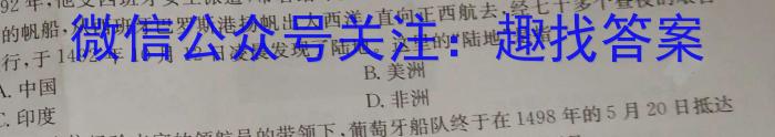 16.1492年,他受西班牙女王派遣,带着给印度君主和中国皇帝的国书,率领三艘百十来吨的帆船,从西班牙巴罗斯港扬帆出大西洋,直向正西航去,经七十多个昼夜的艰苦航行,于1492年10月12日凌晨发现了陆地。这里的“陆地”是指A.中国B.美洲C.印度D.非洲