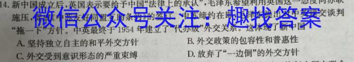 14.新中国成立后,英国表示要给予中国“法律上的承认”,希望利用英国这一态度向苏联施压,促成《中苏友好同盟互助条约》的签订。中苏缔约在即,提出对中英建交谈判“拖一下”方针。中英最终于1954年建立了“代办级”外交关系。这体现了新中国A.坚持独立自主的和平外交方针B.外交政策的包容性和普惠性C.外交受到意识形态的严重束缚D.放弃了“一边倒”的外交方针