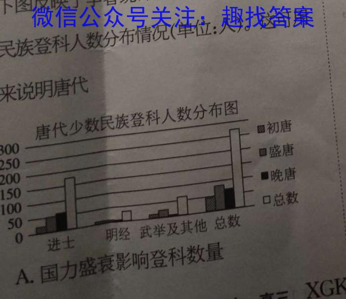 11.下图反映了学者统计的唐代科举制下少数民族登科人数分布情况(单位:人)。这可用来说明唐代A.国力盛衰影响登科数量B.庶族子弟人仕日益受阻C.进士科目考试难度最低D.制度建设推动文化认同