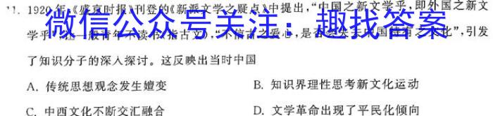 1.1920年,《盛京时报》刊登的《新派文学之疑点》中提出,“中国之新文学乎,即外国之新文学乎”,让一般青年不读书(指古文),“不信古之爱心,是否会失去中国特有之文化”,引发了知识分子的深人探讨。这反映出当时中国A.传统思想观念发生嬗变B.知识界理性思考C.中西文化不断交汇融合D.文学革命出现了平民化倾向